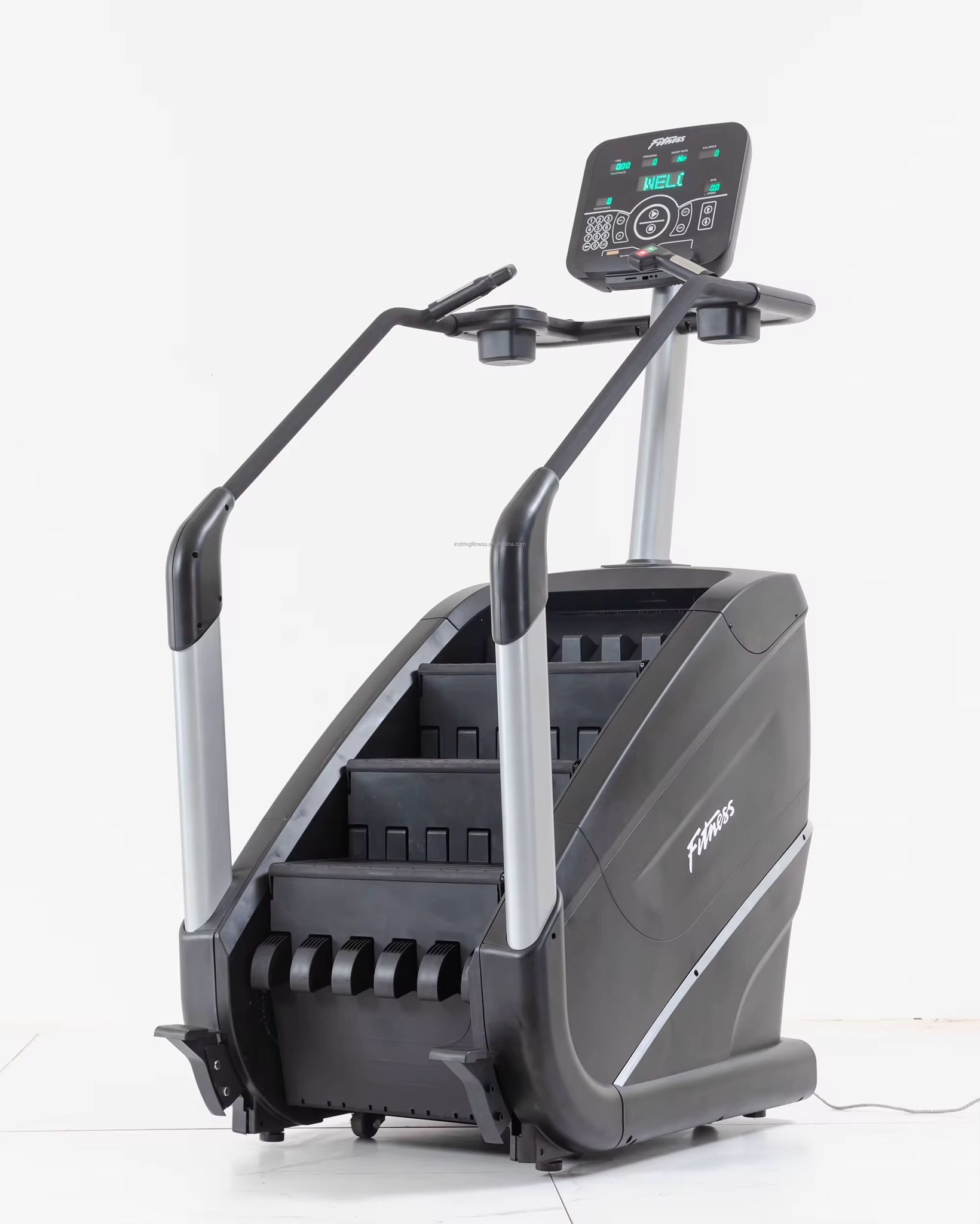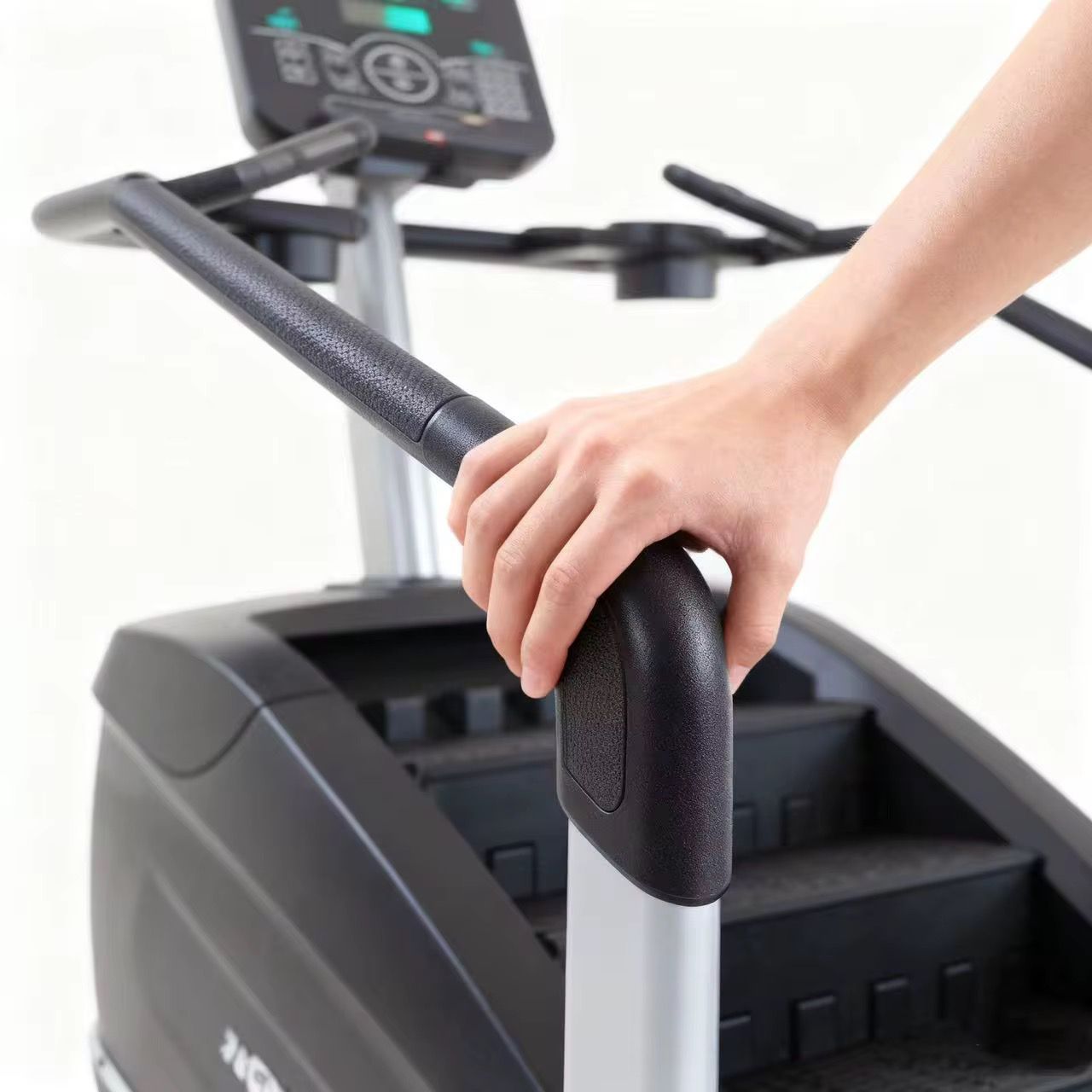 Esta Escaladora incluye una consola donde se indican aspectos como por ejemplo el tiempo y distancia recorridos, el programa establecido, las calorías quemadas, la resistencia o la velocidad. La máquina incluye además un medidor de la frecuencia cardiaca a través del manillar que se puede ver reflejado en pantalla.